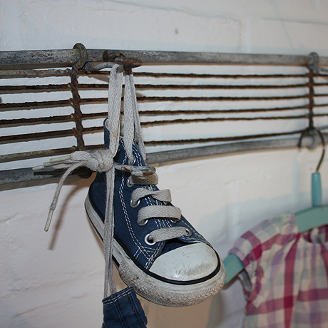 We have no idea what the original use of this rack was, but I'm sure you would agree it makes an ideal set of hooks.
