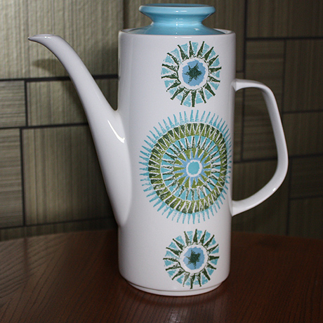 A lovely 1966 Alan Rogers design 'Aztec', J&G Meakin. White background, sunburst pattern of concentric circles.